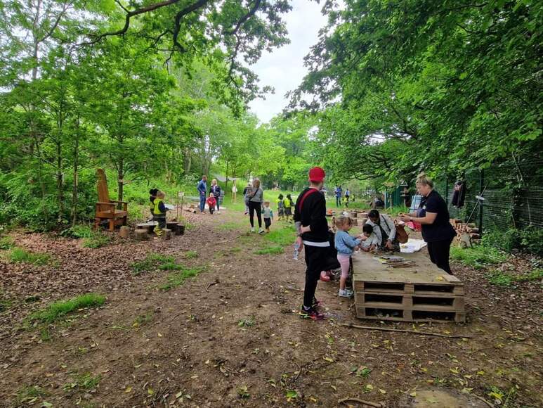 Children (and parents) enjoyed playing in the playground, building dens out of blocks and sheets, cutting and sticking in the craft area and of course, toasting marshmallows in our new forest area. They were even able to meet Penny, our very own chicken who joins us every Tuesday in forest school for Treetop Tuesdays.